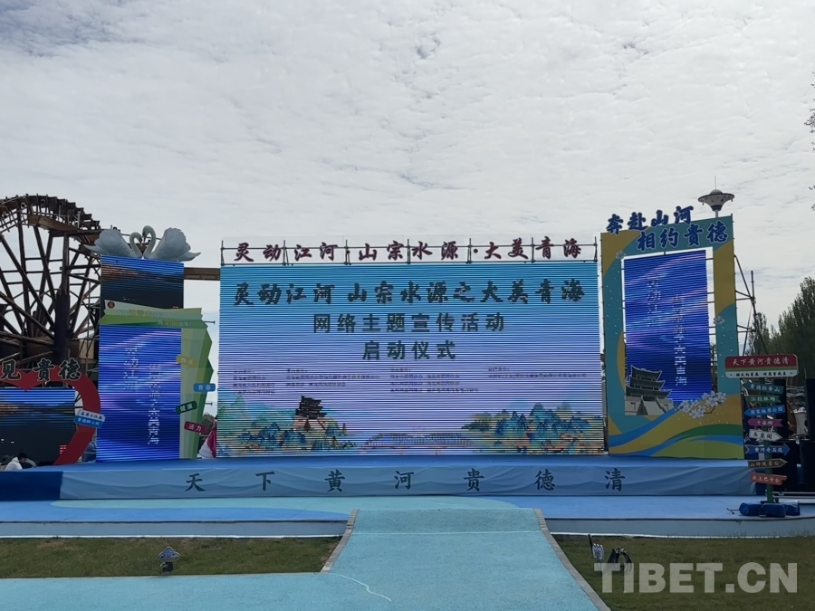 图为设置在贵德县黄河岸边的2025年“灵动江河·山宗水源之大美青海”网上主题宣扬活动发动包庇会场,此段流域素有“全国黄河贵德清”的美誉。拍摄:毕然