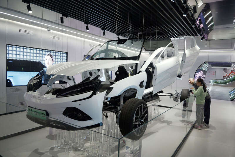 走进比亚迪郑州双网旗舰店,一名主播正通过短视频平台向粉丝介绍店内的新车型。车前摆放着不同车型的补贴金额,从一万元到两万元不等,该店销售顾问和记者说,8月以来,门店销量同比增长30%以上。